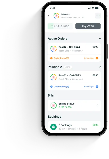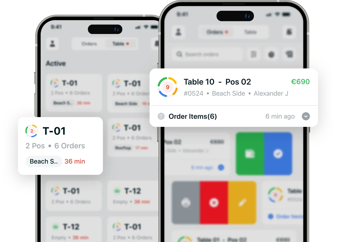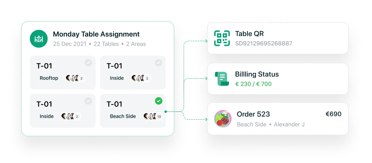 Stay organized with clear table assignments and live status updates. Know exactly which guests need attention at a glance.