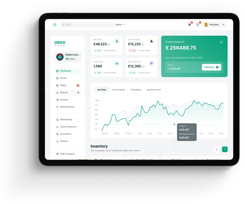 Yes. ORDO is engineered to be a connected restaurant management platform. We understand that silos kill efficiency, so our system is designed to align with your existing workflows, ensuring that restaurant POS integrations, payment flows, and reporting are synchronized. This provides a "single source of truth" for your financial data.